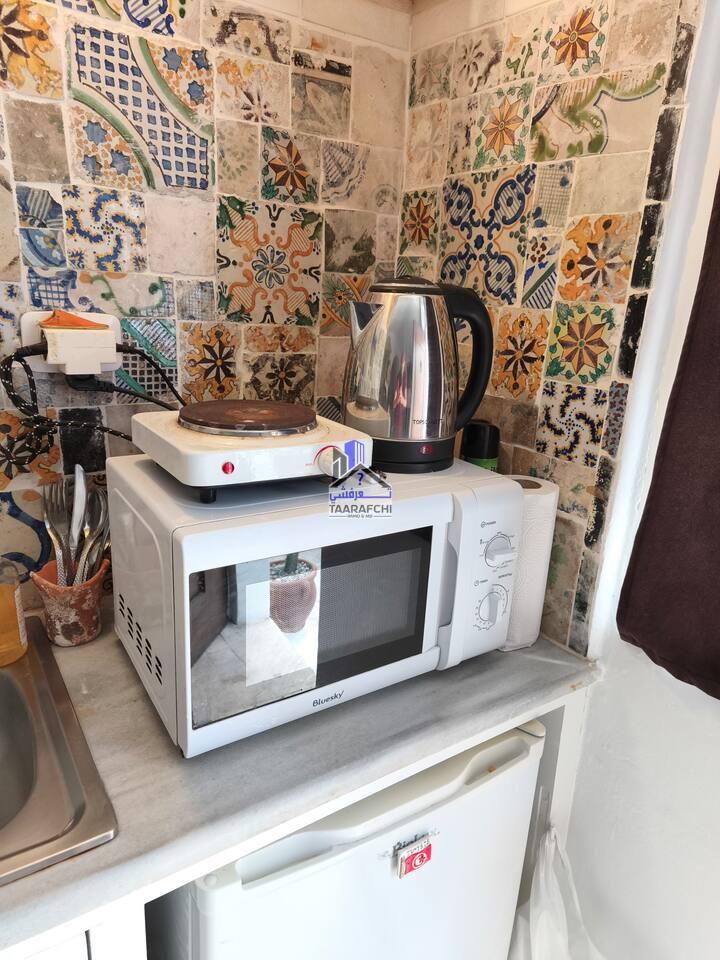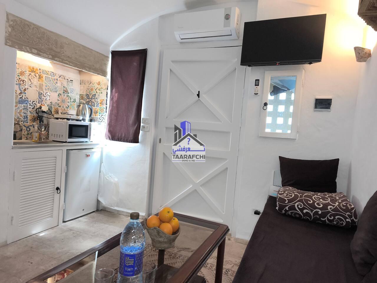 A louer un appartement S+0 pour des courtes période situé au cœur de la Médina d’Hammamet. C’est un Open Space composé d’une kitchenette ouverte sur salon avec un coin pour dormir traditionnellement décoré et une salle d’eau avec douche. Il est bien meublé et équipé par la climatisation réversible. Le prix de location dépond de la période demander.
