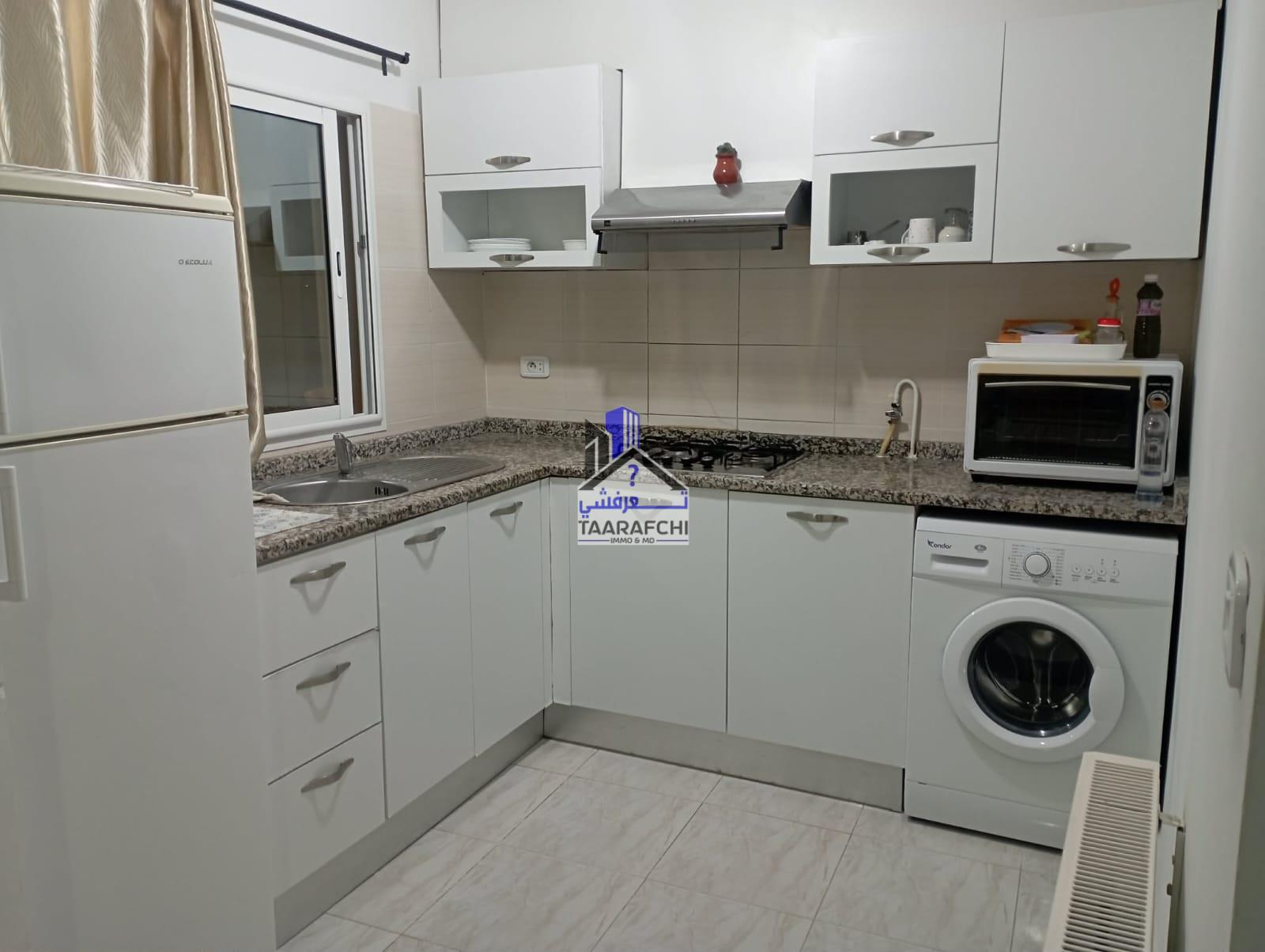 A louer annuellement un appartement S+1 situé au 3ème étage d’un petit immeuble à Hwanet Hammamet proche de toute commodité. Il se compose d’une cuisine ouverte sur salon, une chambre à coucher, une salle d’eau avec douche et un balcon. L’appartement est meublé et équipé de gaz de ville et de climatisation.