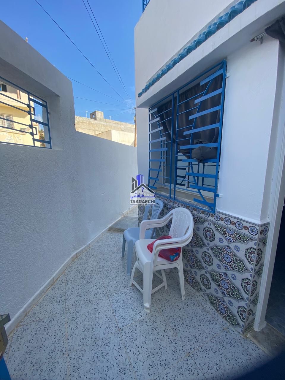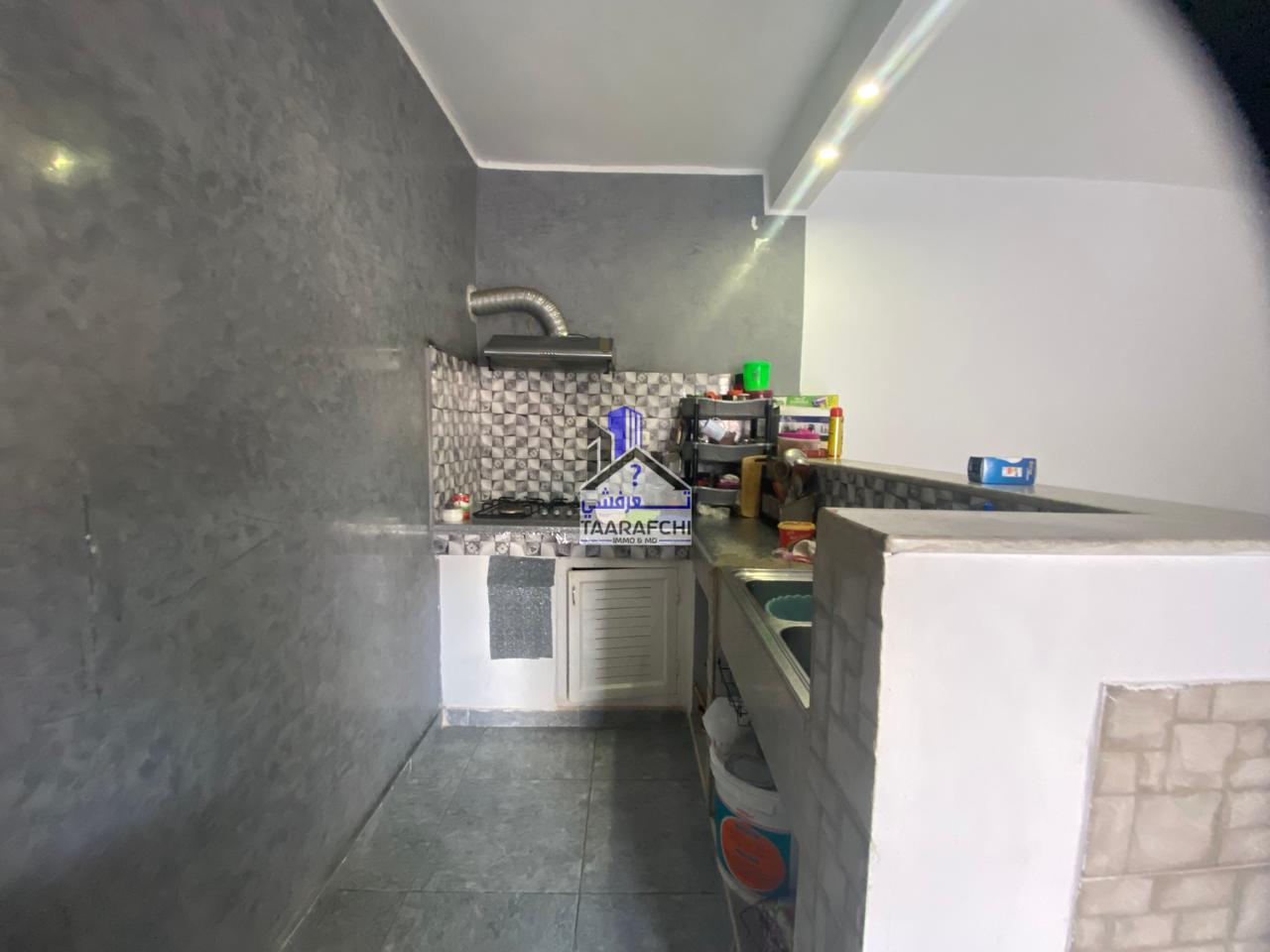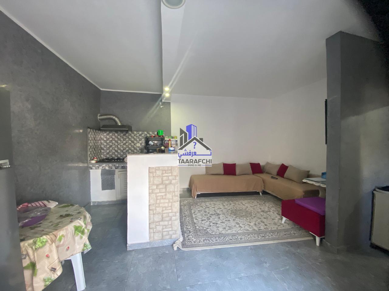 A vendre un appartement S+1 avec terrasse en rez-de-chaussée situé à Hammamet nord.