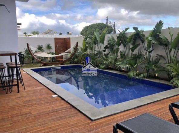 À Vendre un Appartement Moderne S+3 avec piscine privée situé au rez-de-chaussée d’un immeuble sécurisée à Hammamet ayant une superficie de 250 m².