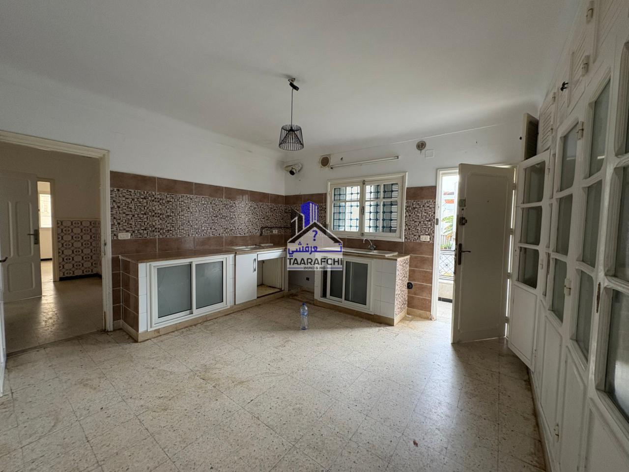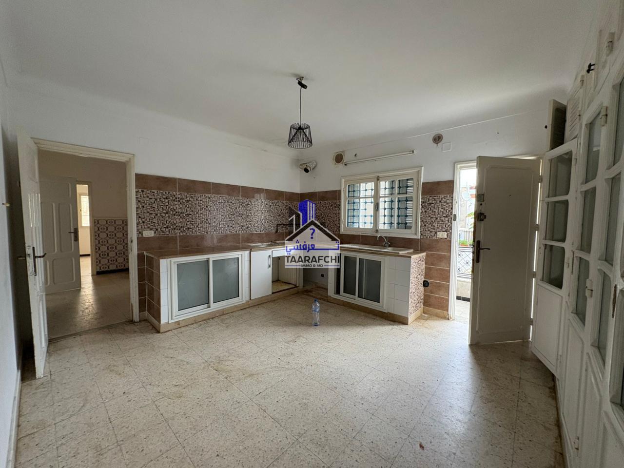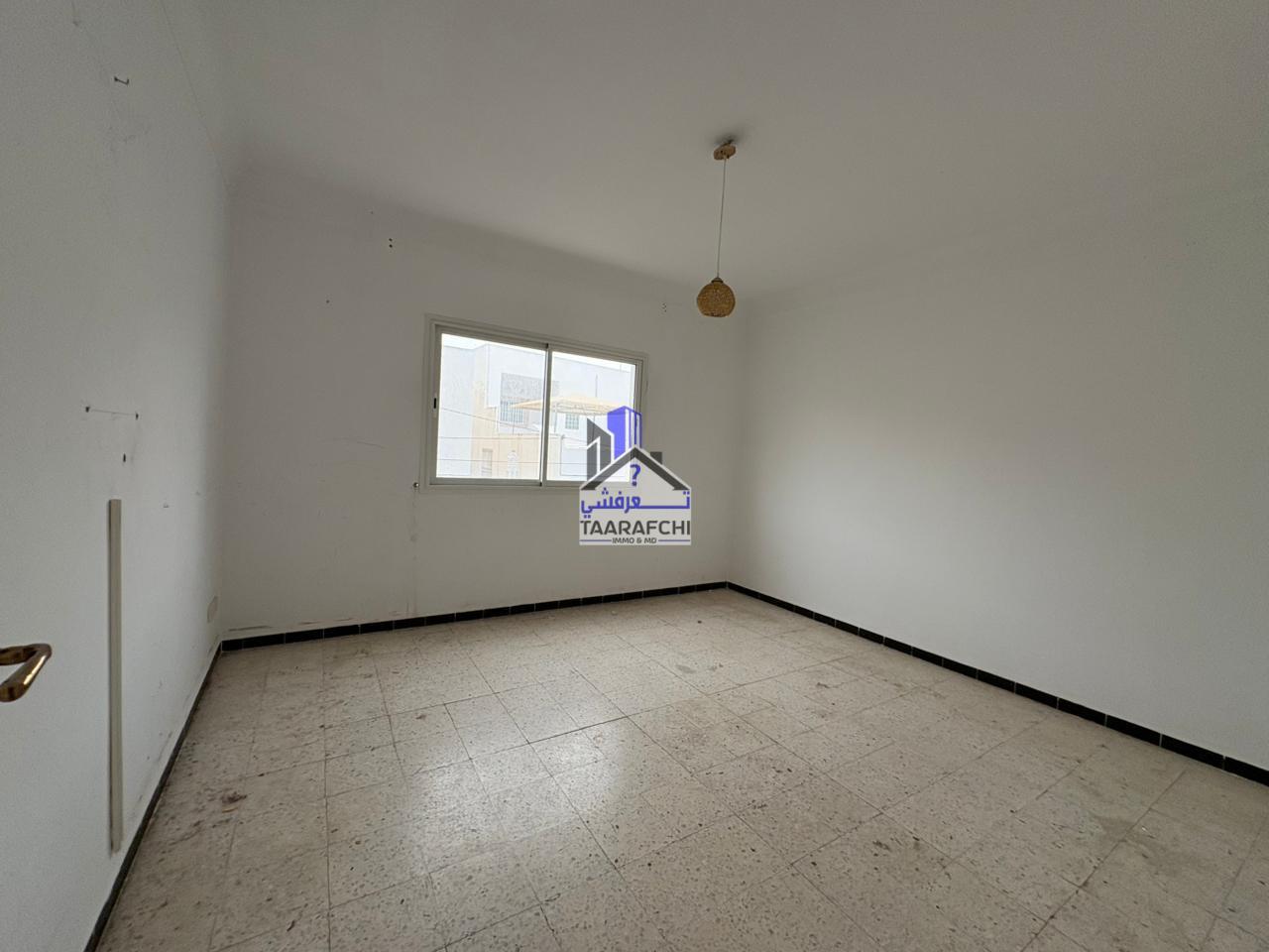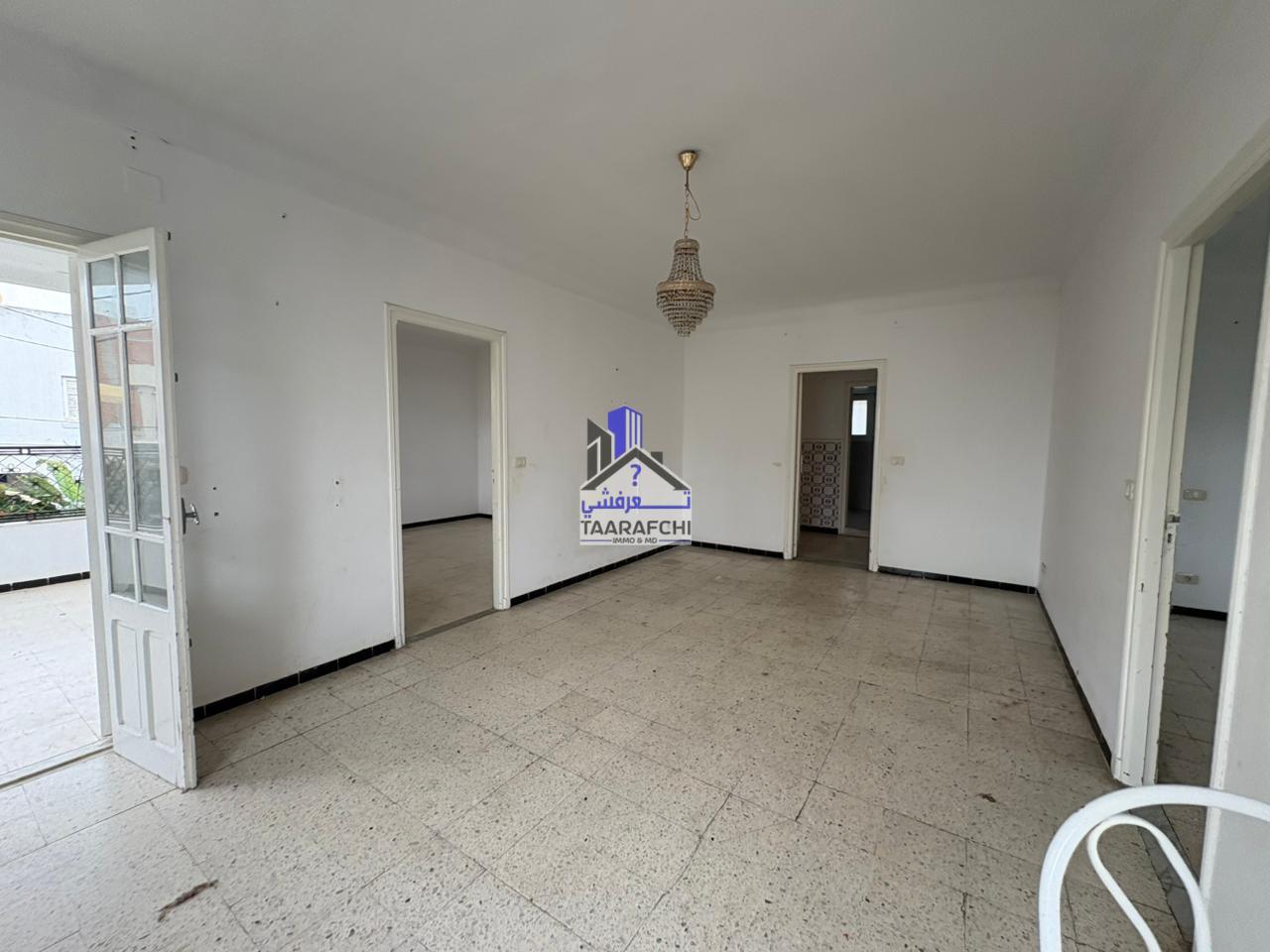 A vendre un appartement S+3 situé au premier étage d’un petit immeuble R+2 situé au centre-ville d’Hammamet à 5min de la mer et de la Médina. Il se compose d’une petite terrasse à l’entrée, un vaste salon, une cuisine avec terrasse, une chambre à coucher avec balcon, deux autres chambres à coucher et deux salles d’eaux chacune avec douche. L’appartement est équipé de gaz de ville et a une superficie de 120 m².