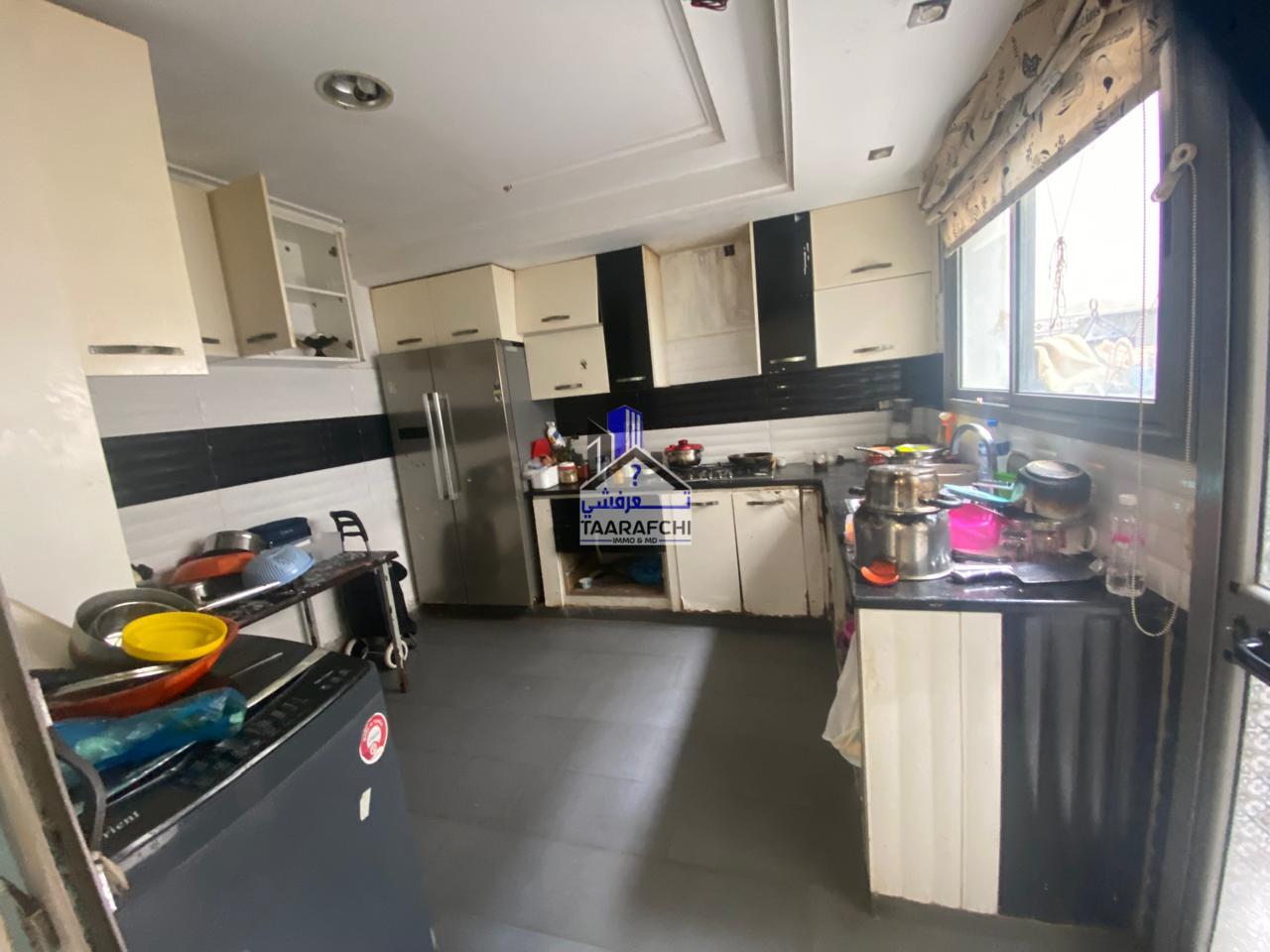 A vendre un appartement S+3 avec terrasse situé au rez-de-chaussée d’un petit immeuble avec entrée indépendante ayant une superficie de 128 m². Il se compose d’un hall à l’entrée, un salon, une cuisine avec terrasse, trois chambres à coucher et une salle d’eau avec douche.