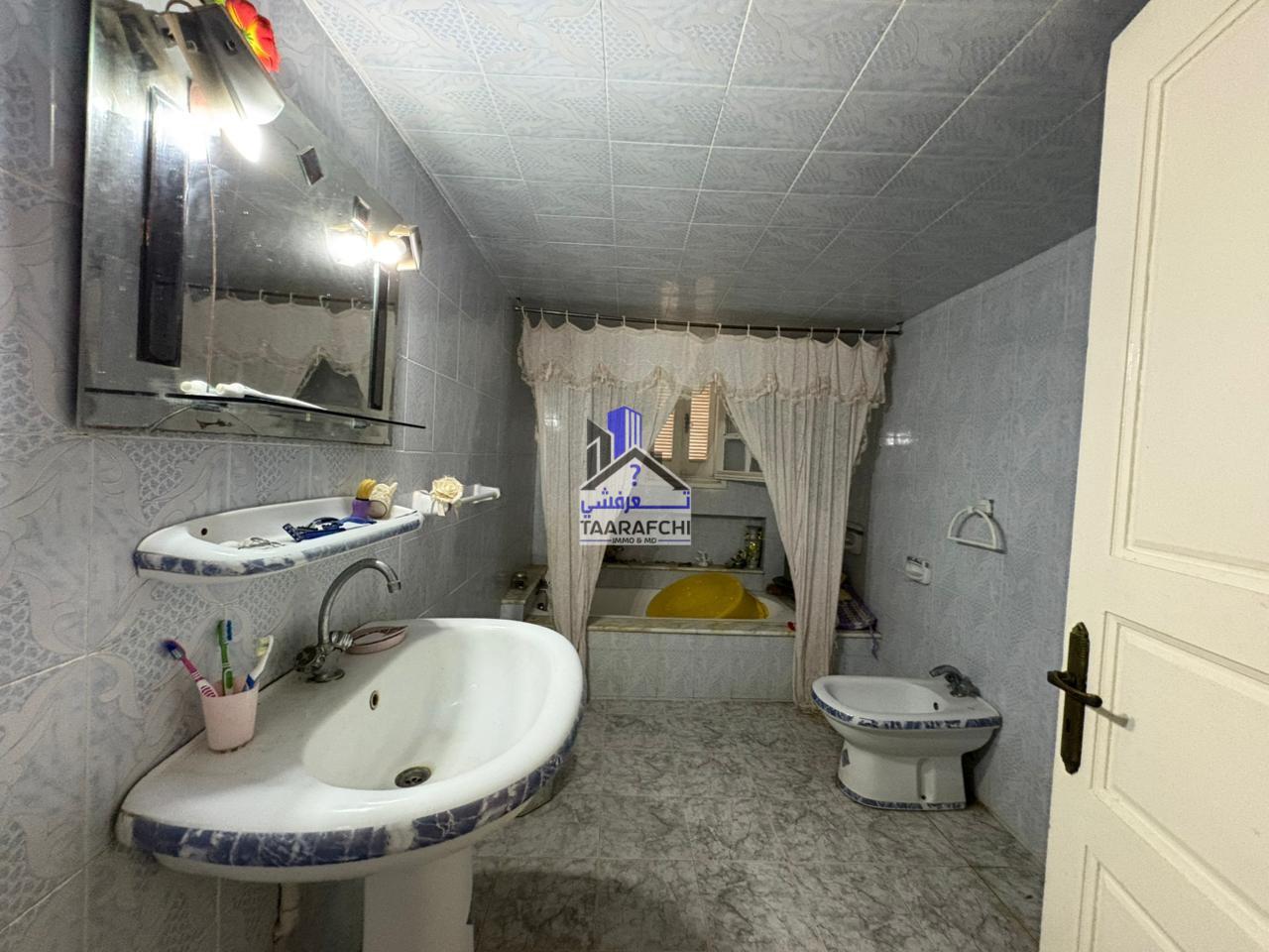 A vendre une maison S+3 située à Hammamet à 10 minutes du centre ville ayant une superficie couverte de 200 m² et de terrain de 600m².