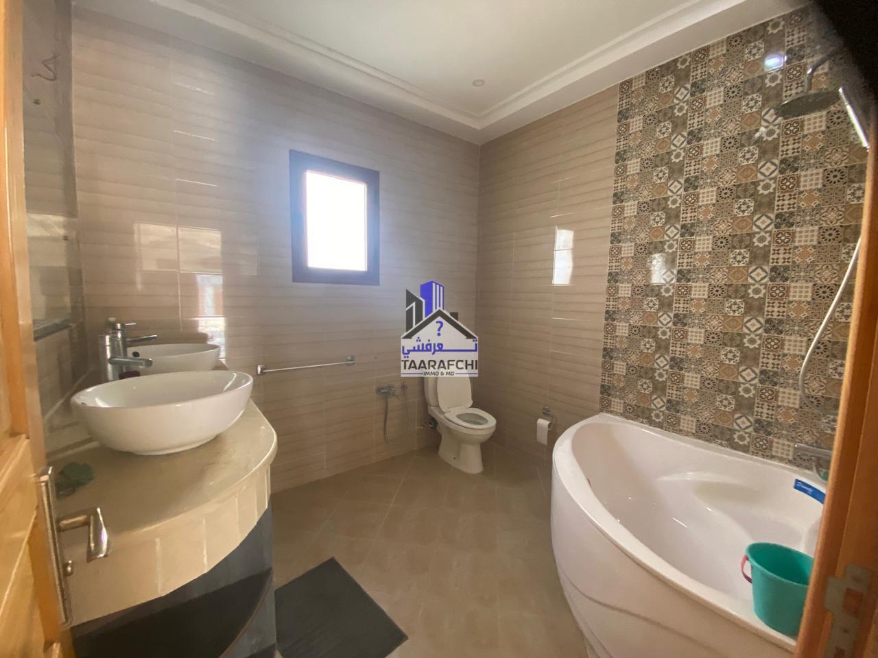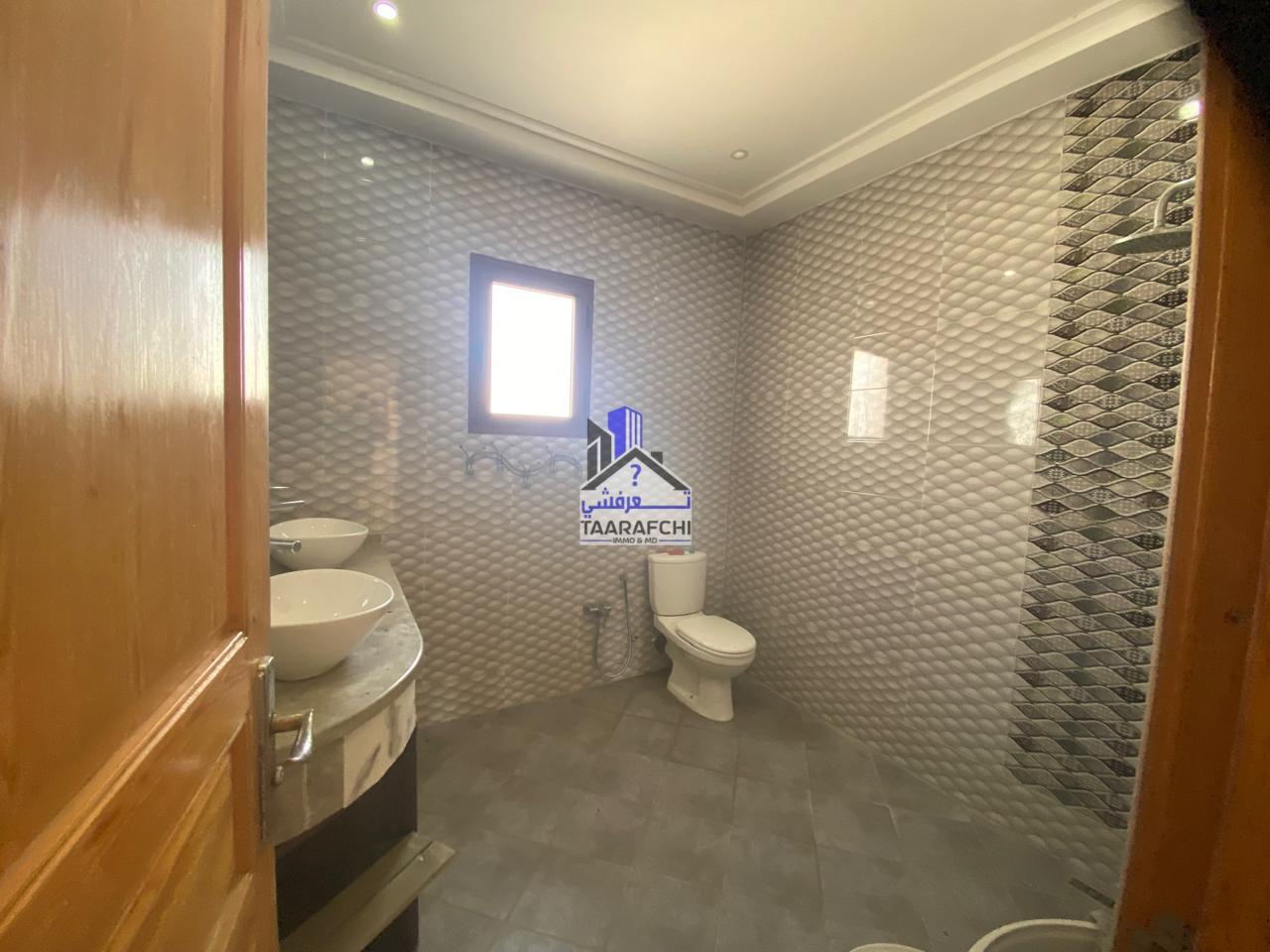 Elle est composée d’une cuisine américaine ouverte sur salon et salle à manger, deux salles de bain, 04 chambres à coucher, un grand jardin et une place de parking.