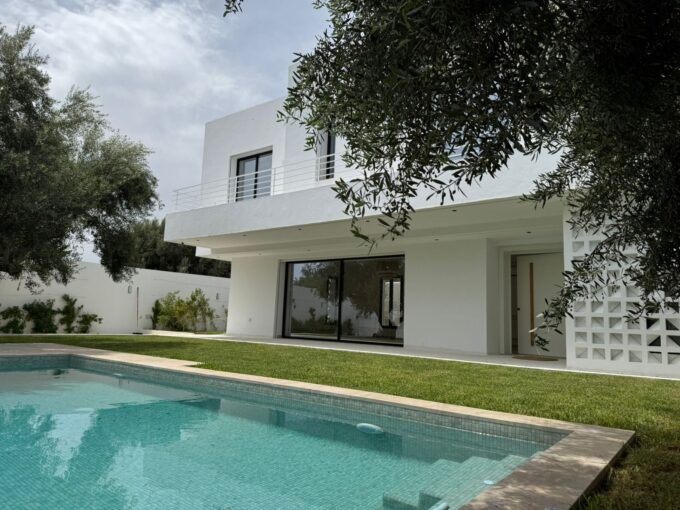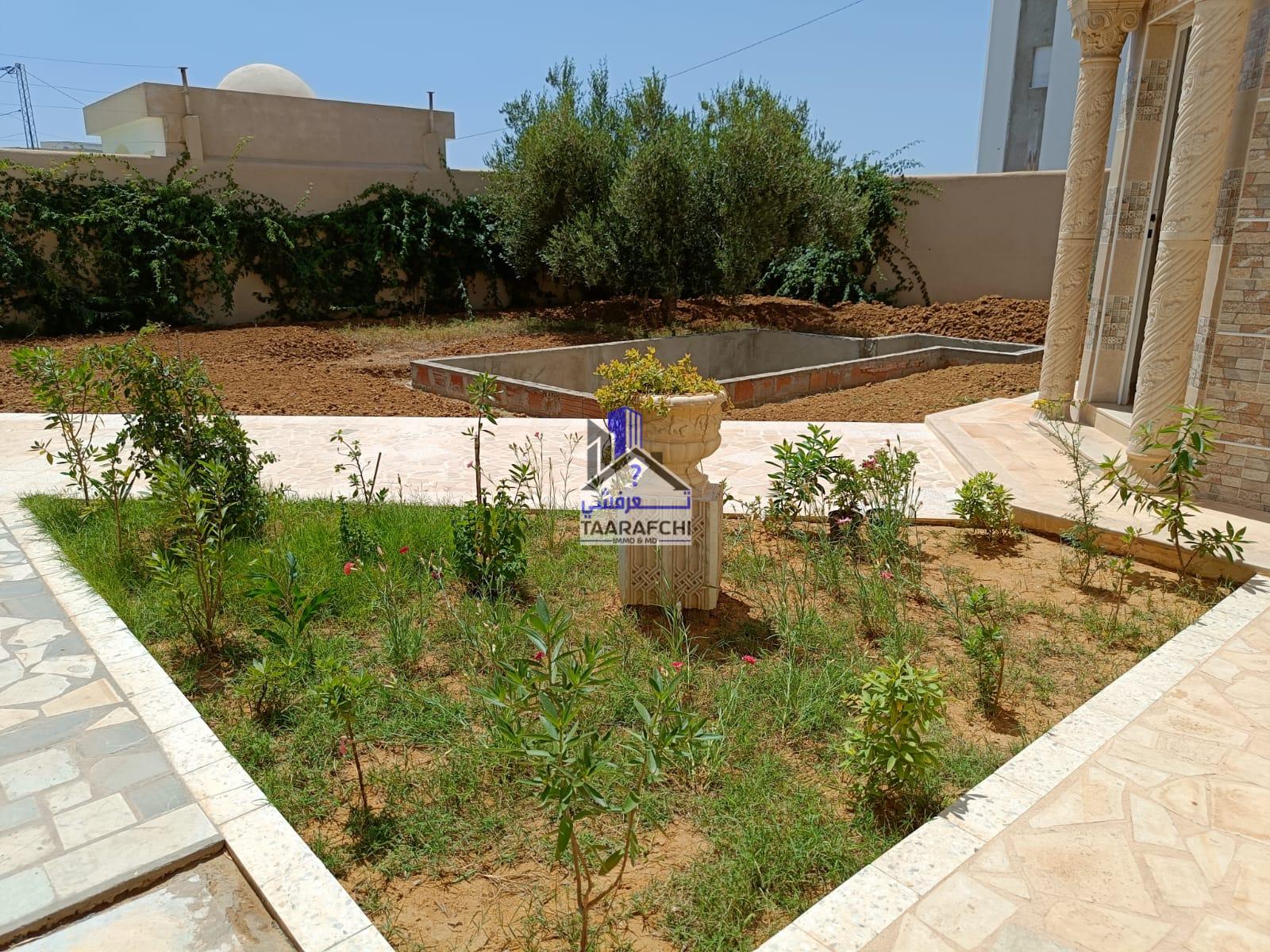 A vendre une maison S+5 avec grand jardin et piscine en cours de construction située à Manaret Hammamet 800m de la plage.