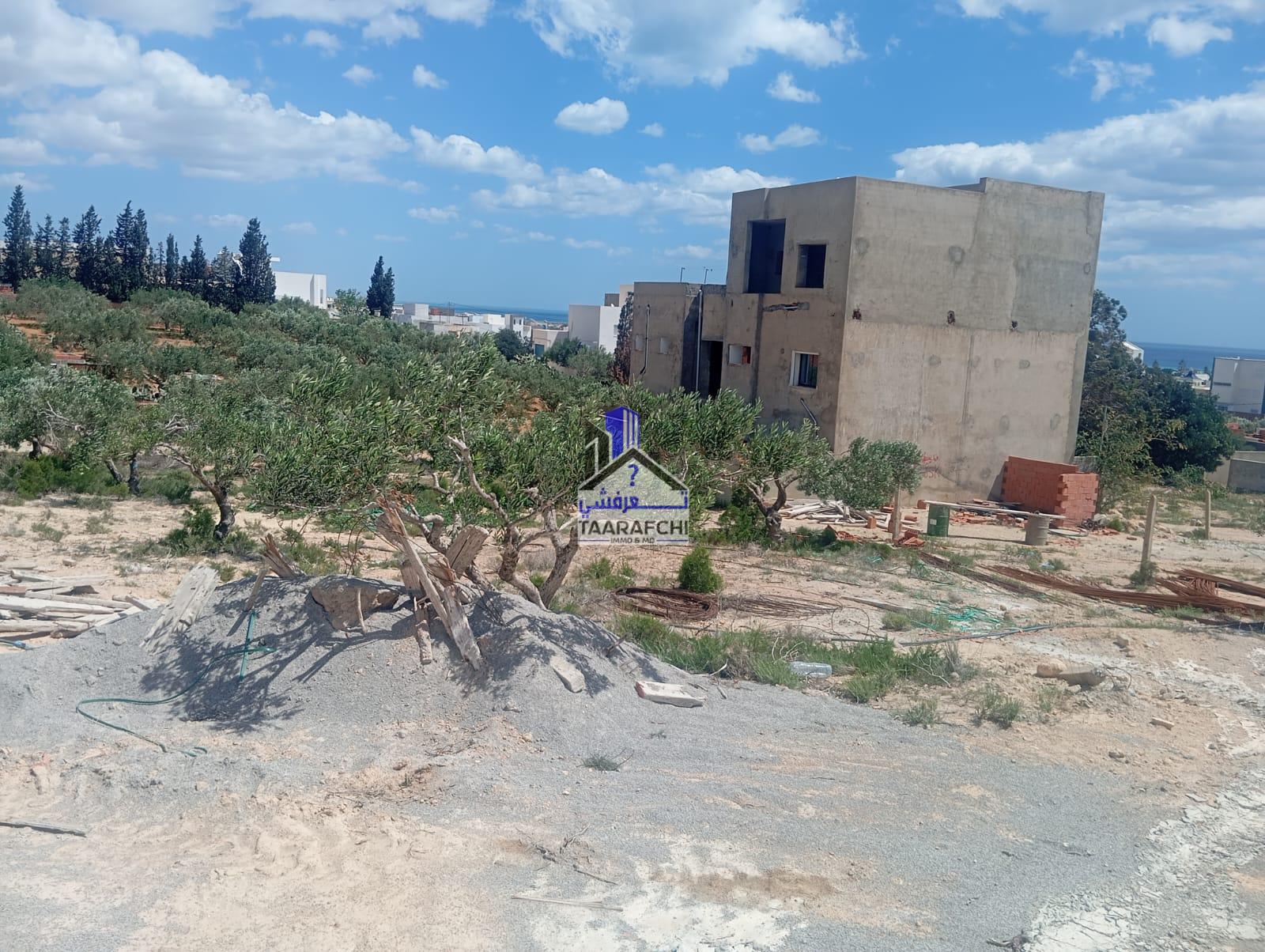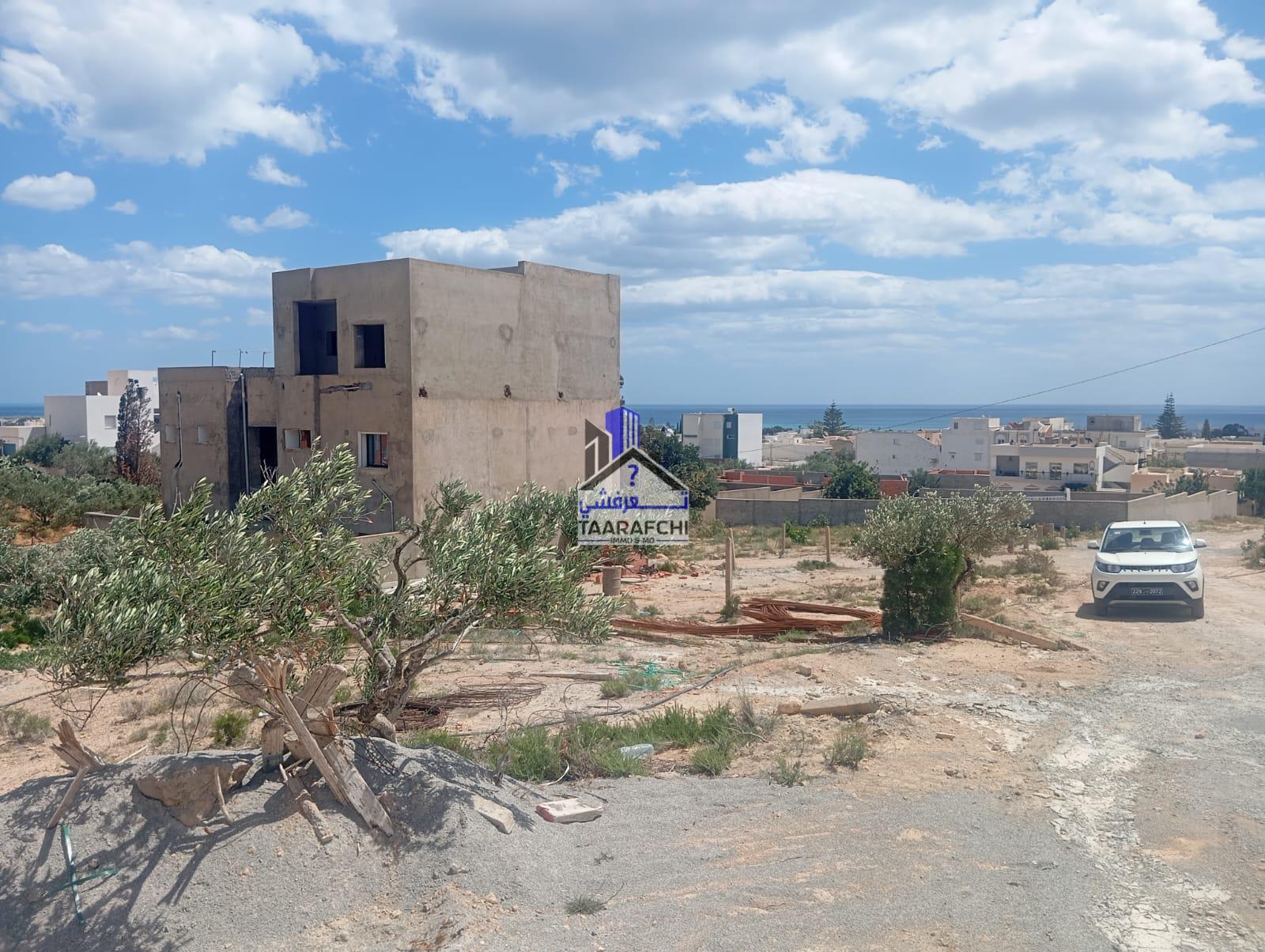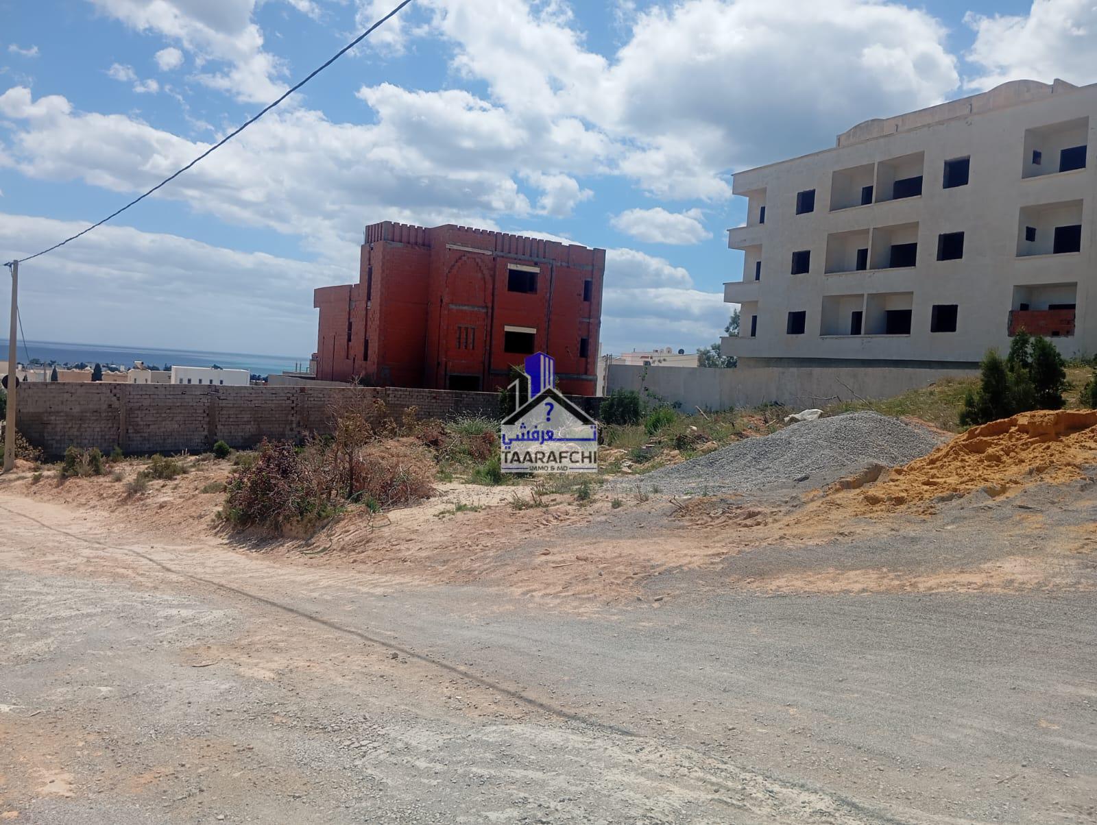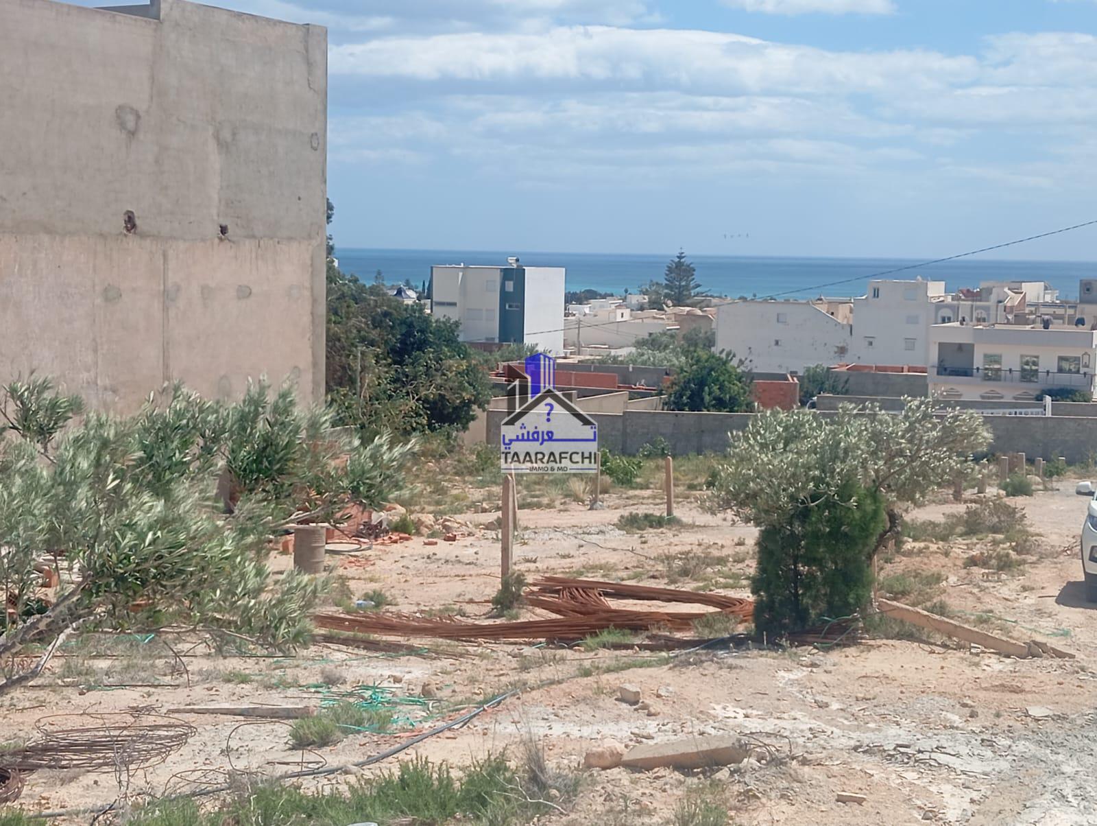 A vendre un terrain vue de mer situé dans une zone résidentielle entourée par des villas à Hammamet nord à 800m de la route ayant une superficie de 307 m².