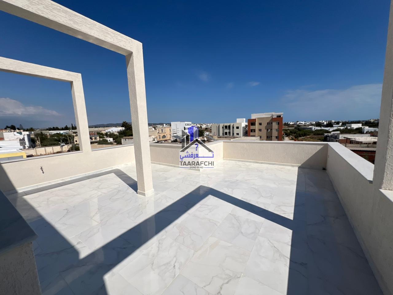A vendre un triplex S+3 avec garage, situé dans un emplacement familiale et de bon voisinage pas loin du rond-point Manaret Hammamet.