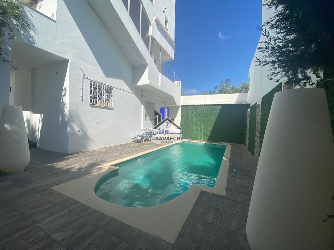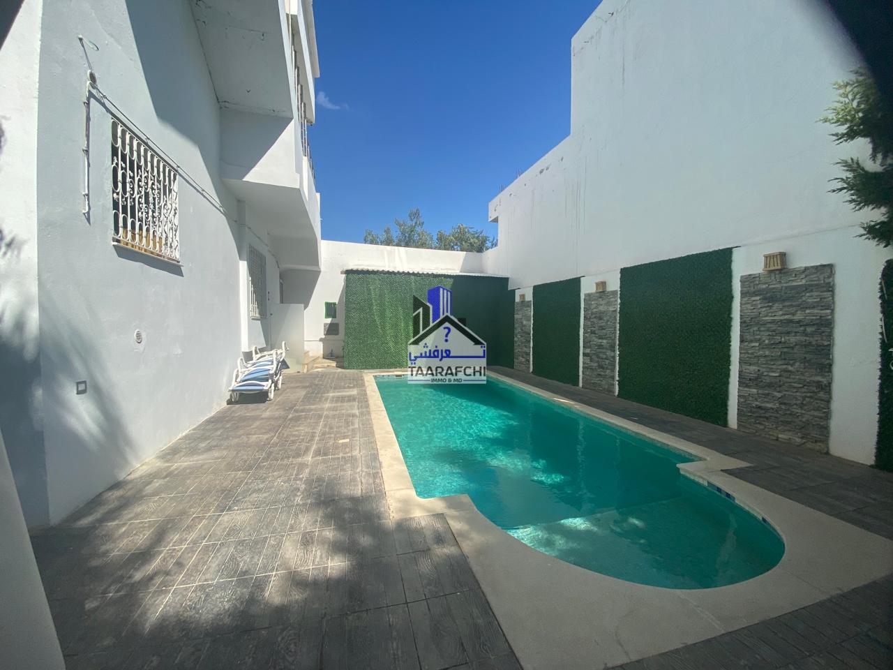 A vendre une villa composée de deux étages séparés rez-de-chaussée S+2 et premier étage S+3 avec l’entrée et la piscine commune située à Hammamet nord.