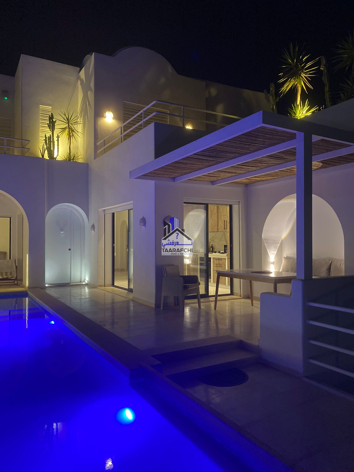 A louer pour des courtes périodes une villa de charme et de style arabesques avec ses arcades et sa magnifique décoration située dans un cartier calme et sécurisé zone Craxi Hammamet.