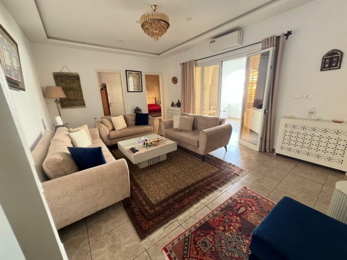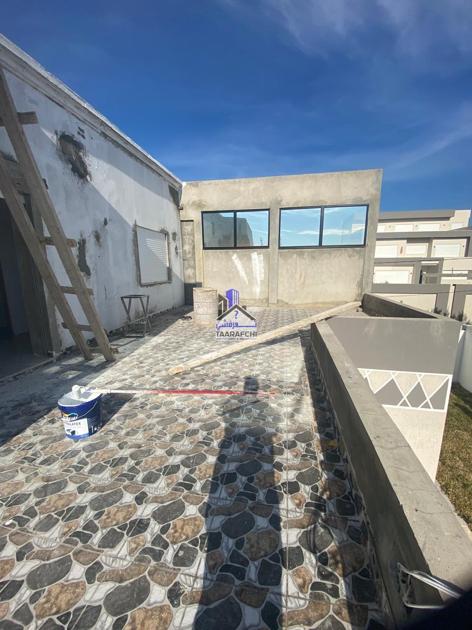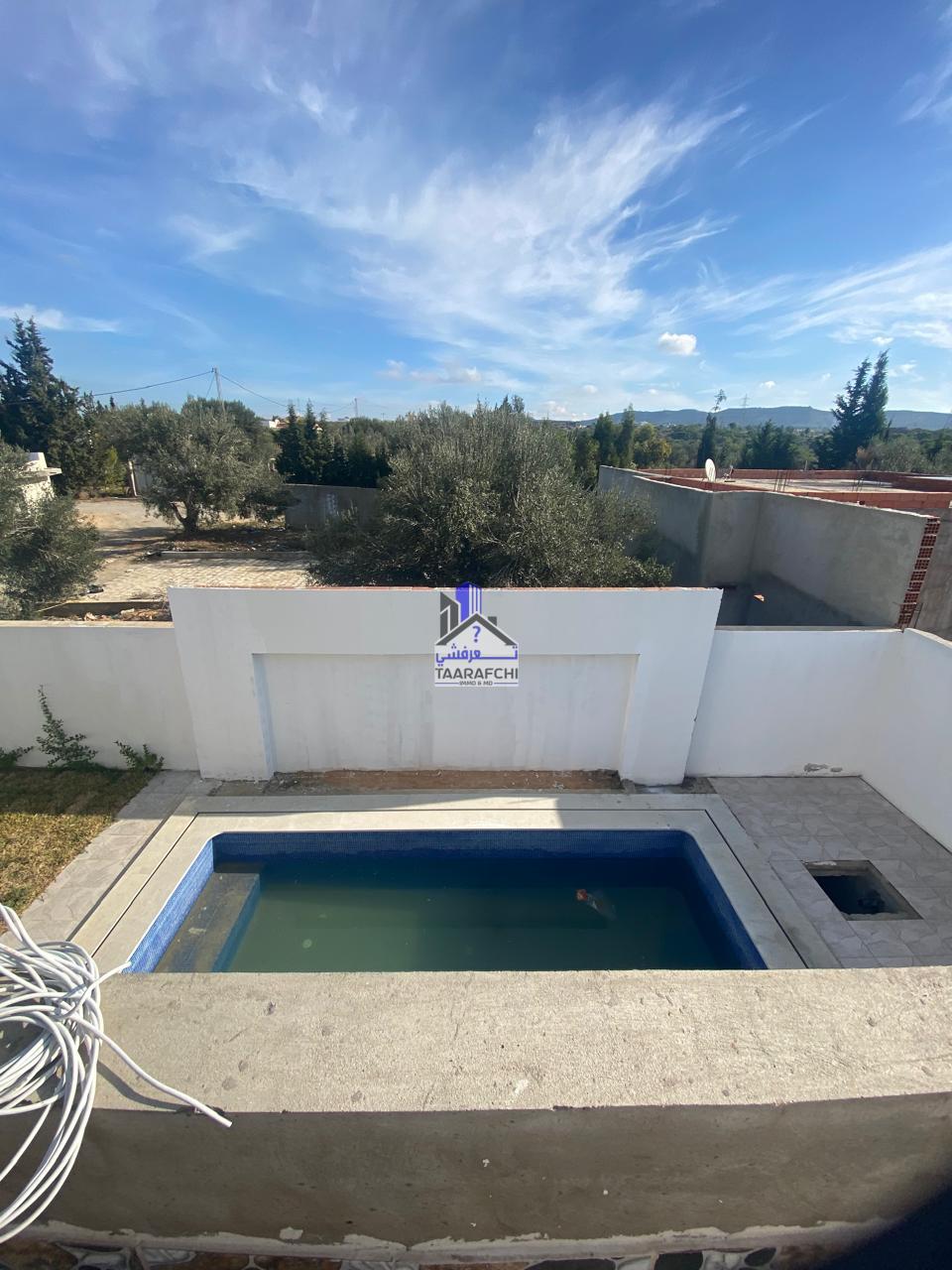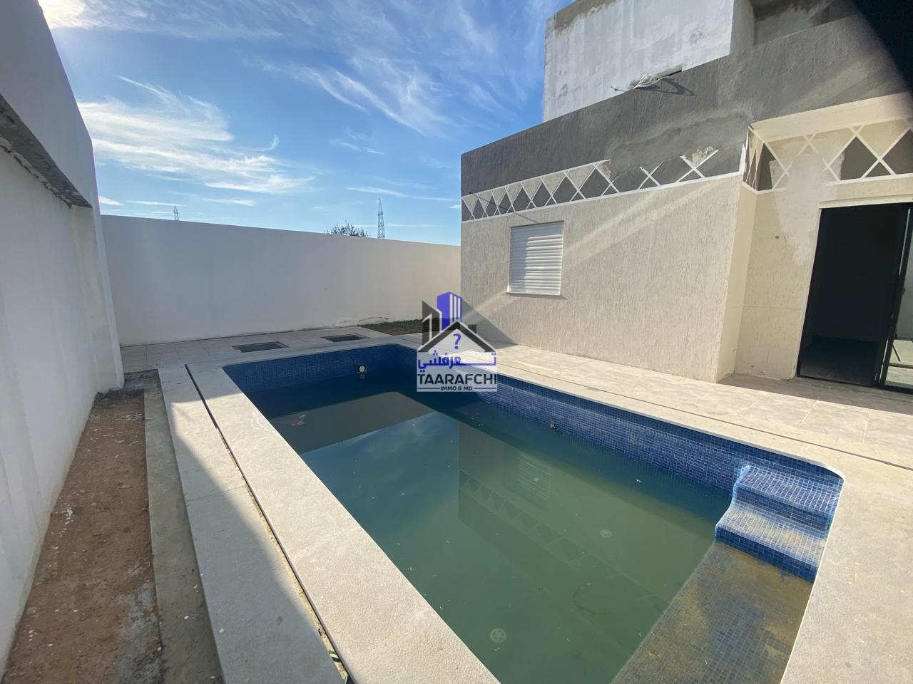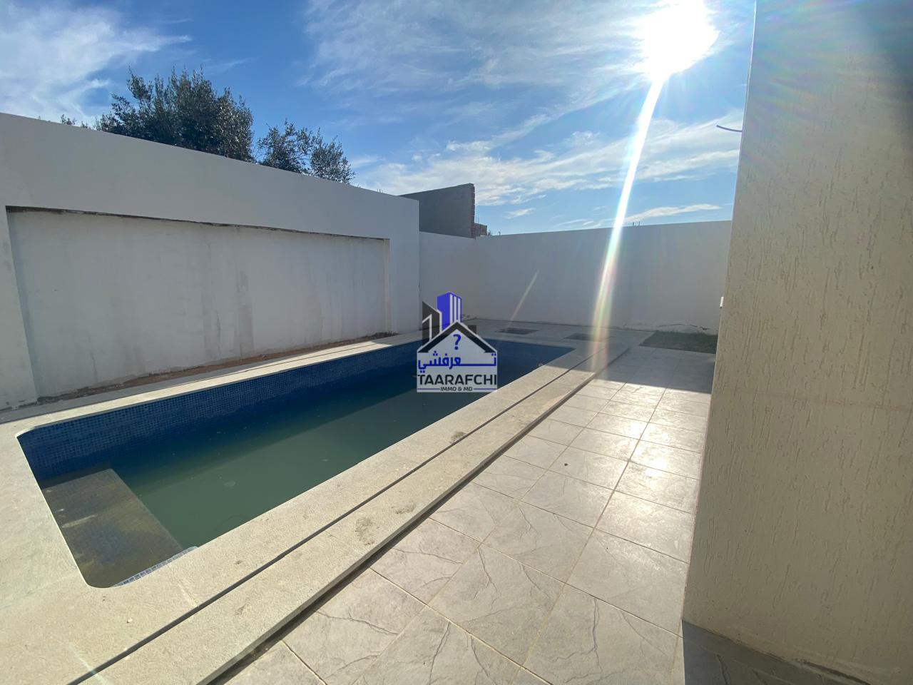 A vendre une villa S+4 avec une piscine et un abri de voiture située à 15min du centre-ville d’Hammamet dans une cité résidentielle.