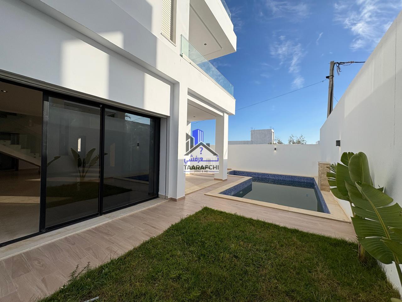 A vendre une villa S+4 de haut standing ayant une de vue mer magnifique avec piscine et sous-sol 40m² située à colline Hammamet nord + un studio S+0 indépendant au 2ème étage.