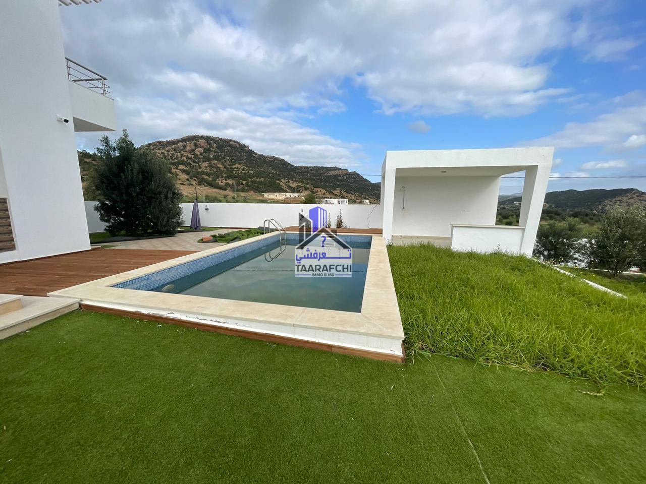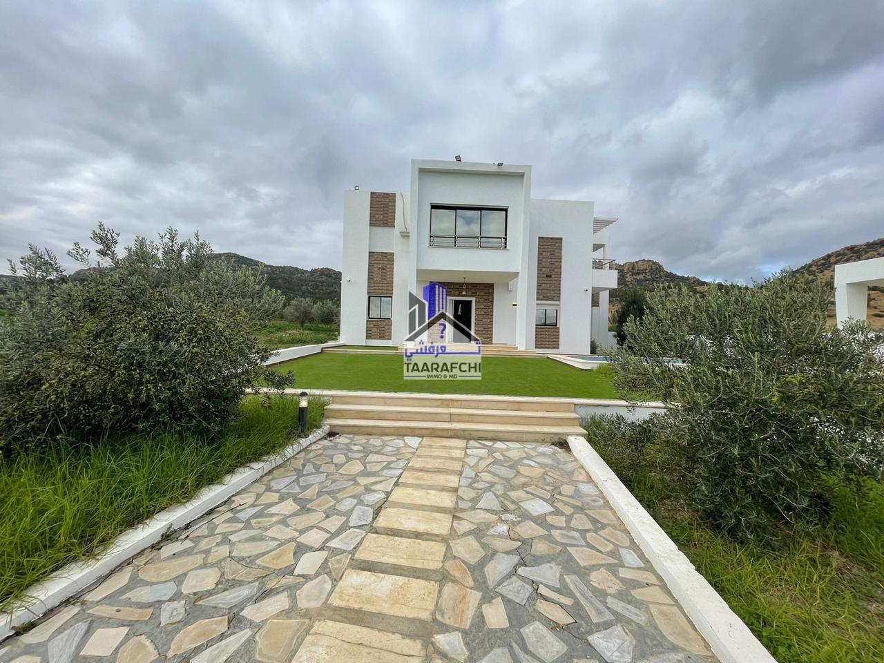 La maison est en plein compagne avec une vue splendide sur montagne sans aucun vis a vis. Luxueusement et entièrement meublée, la maison est composée d’un grand salon, salle à manger, grand cuisine américaine et entièrement équipée (lave-vaisselle, four, gaz, hotte, micro-ondes, frigidaire… ) 04 chambres à coucher, salle de séjour, 2 salles de bain, et une salle d’eau. Cheminée à bois toute neuve, jardin d’hiver. Piscine et grand jardin, abri de voitures. La maison est également équipée de cameras de sécurité, panneaux Energie solaire et 06 climatiseurs split neuves.