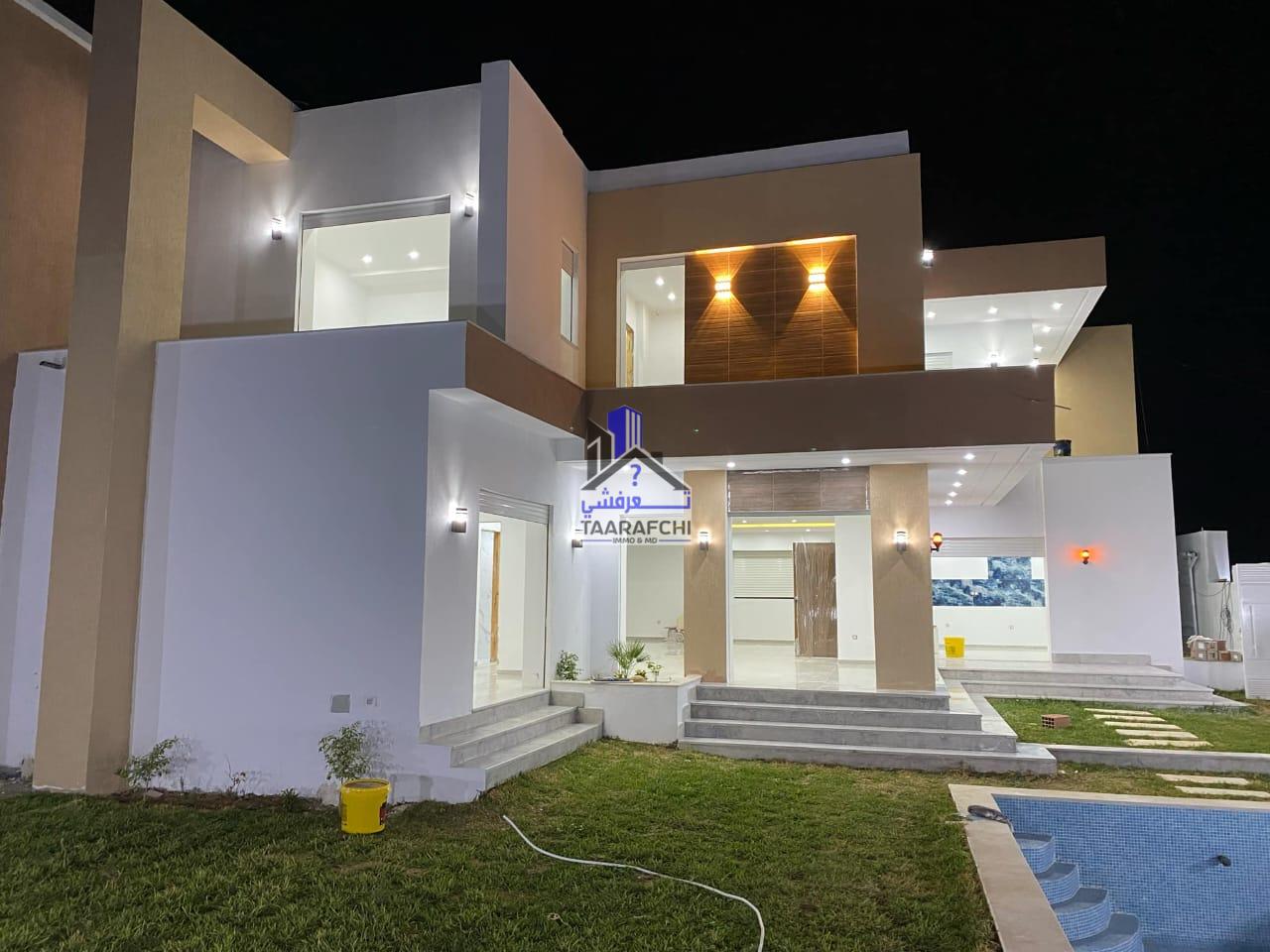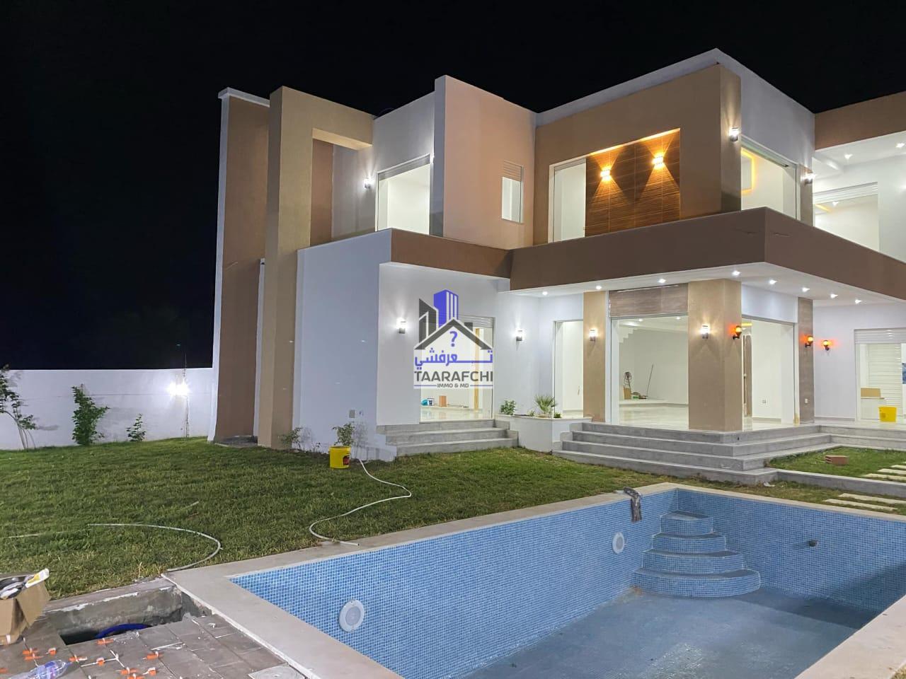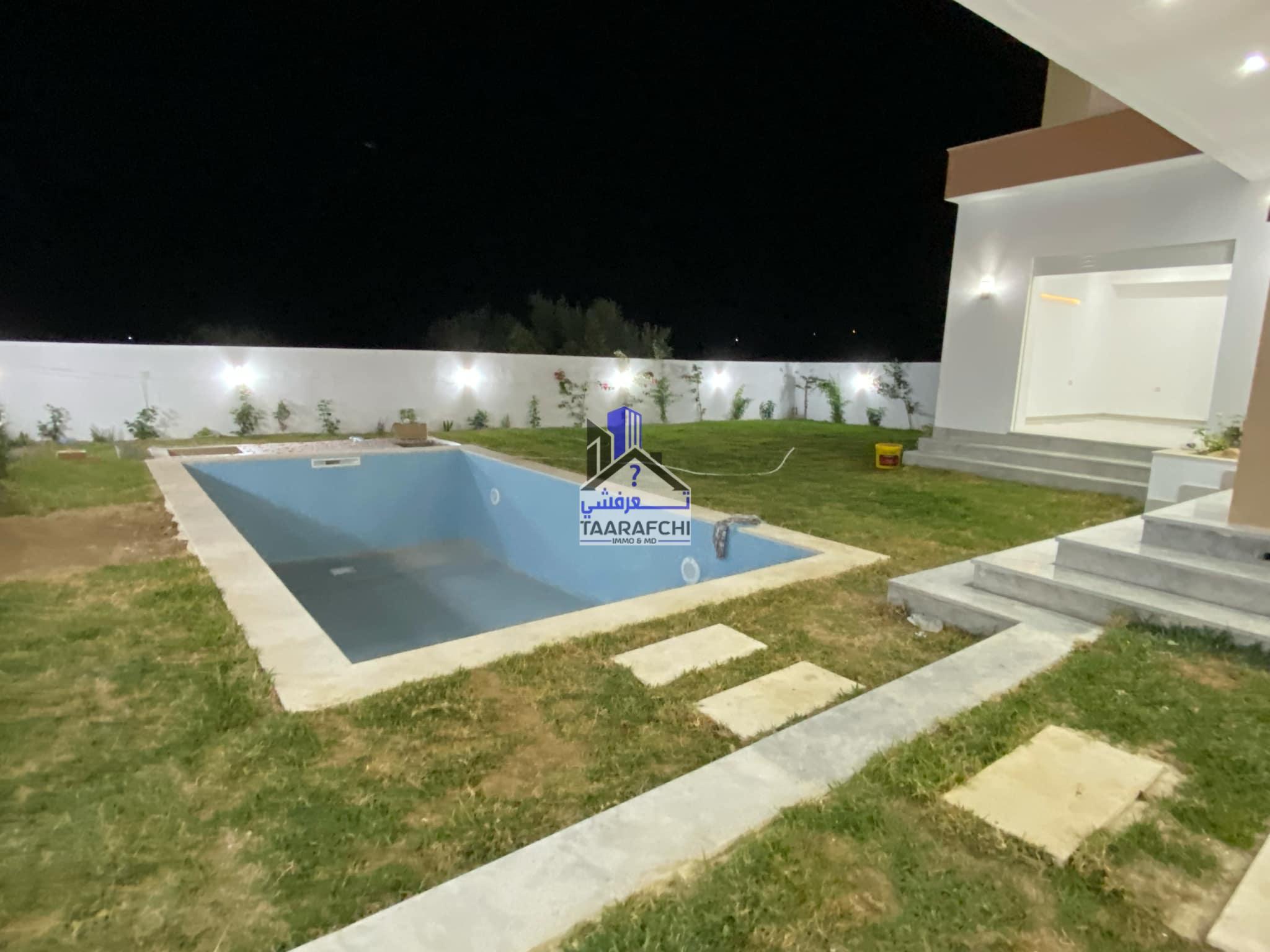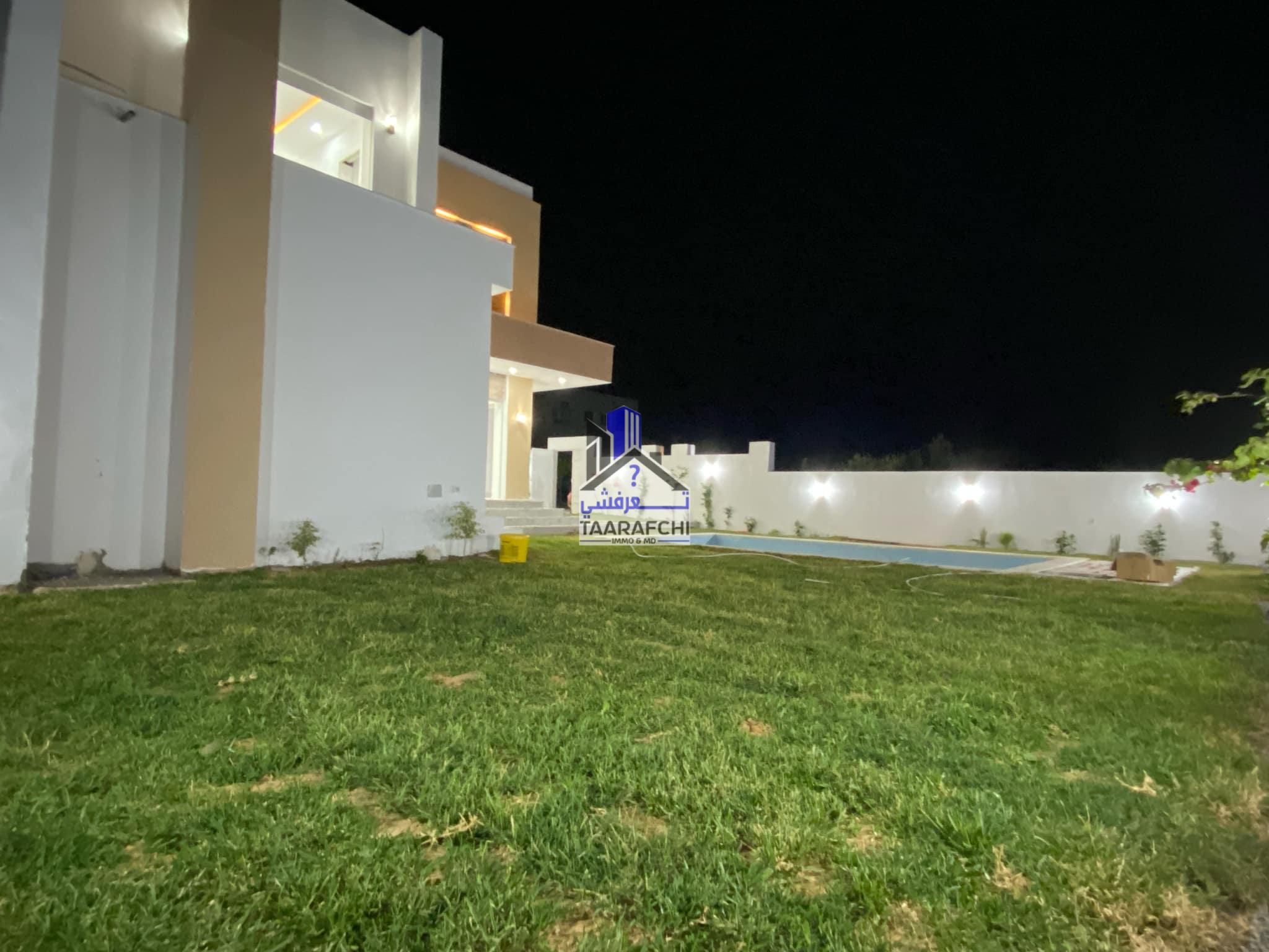 A vendre une villa S+4 de haut standing avec piscine, située dans un emplacement calme à 6km d’Hammamet sud.