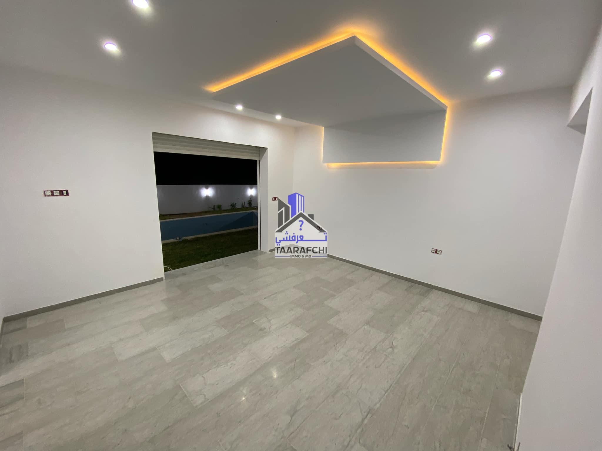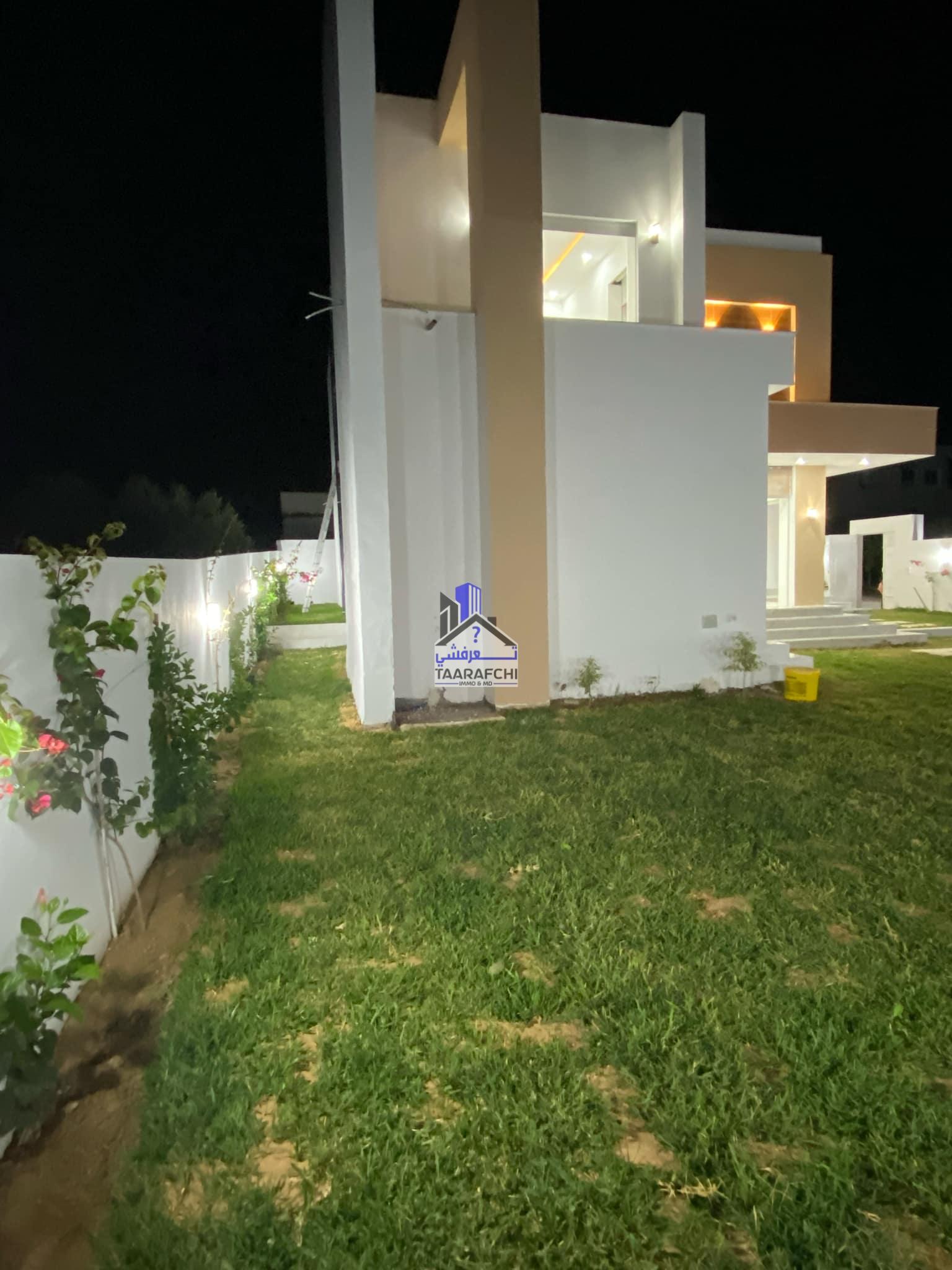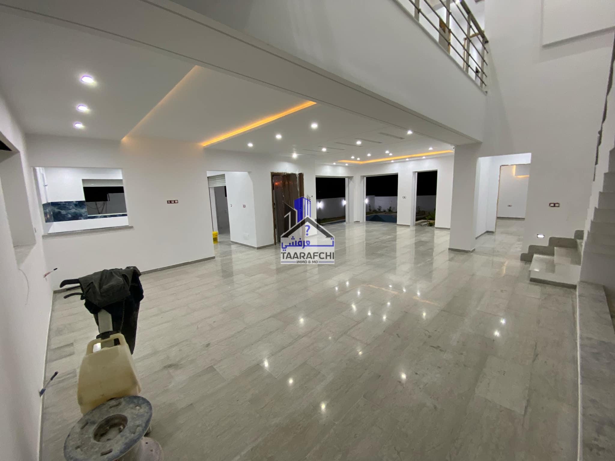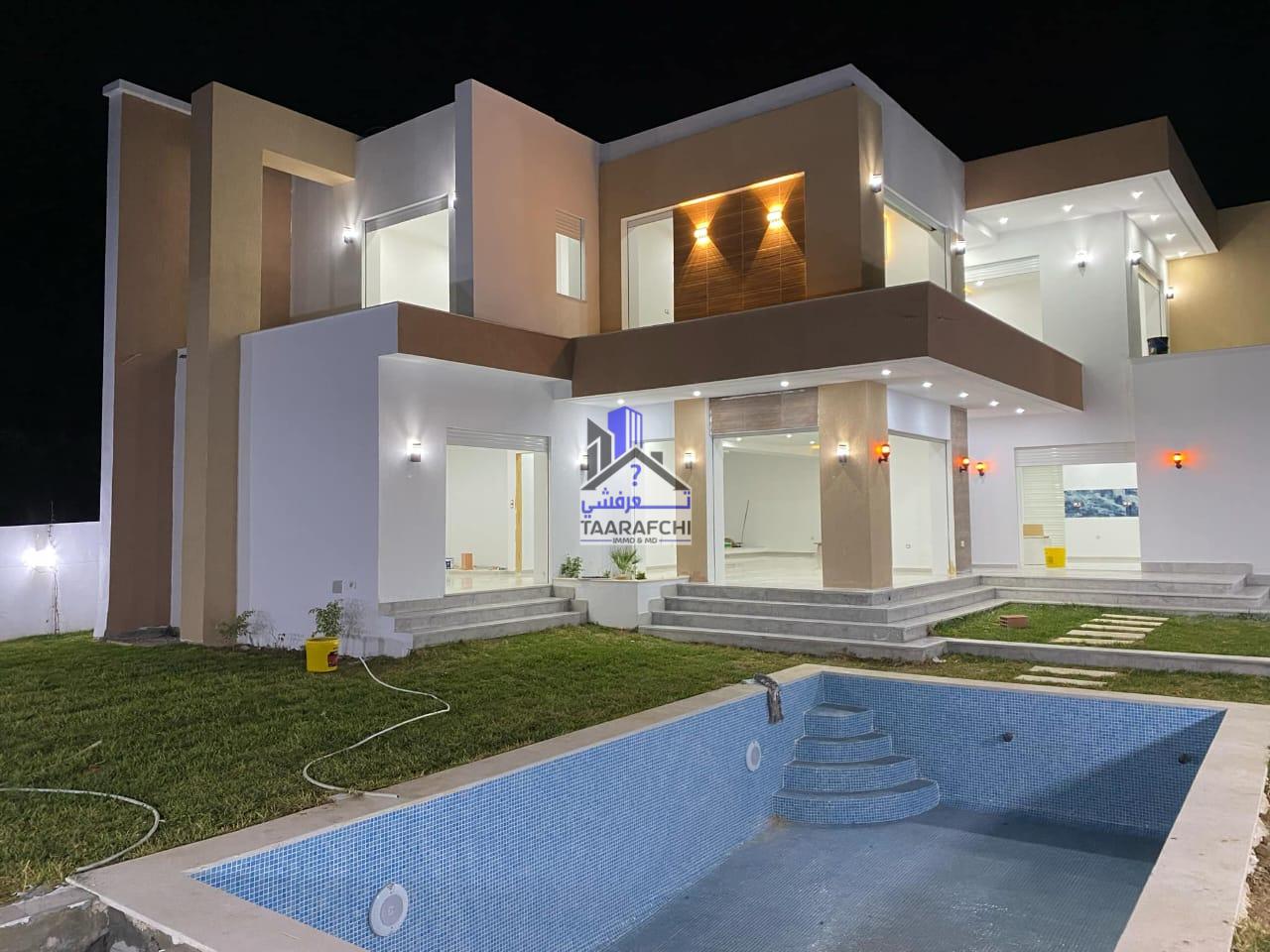 A vendre une villa S+4 de haut standing avec piscine, située dans un emplacement calme à 6km d’Hammamet sud.
