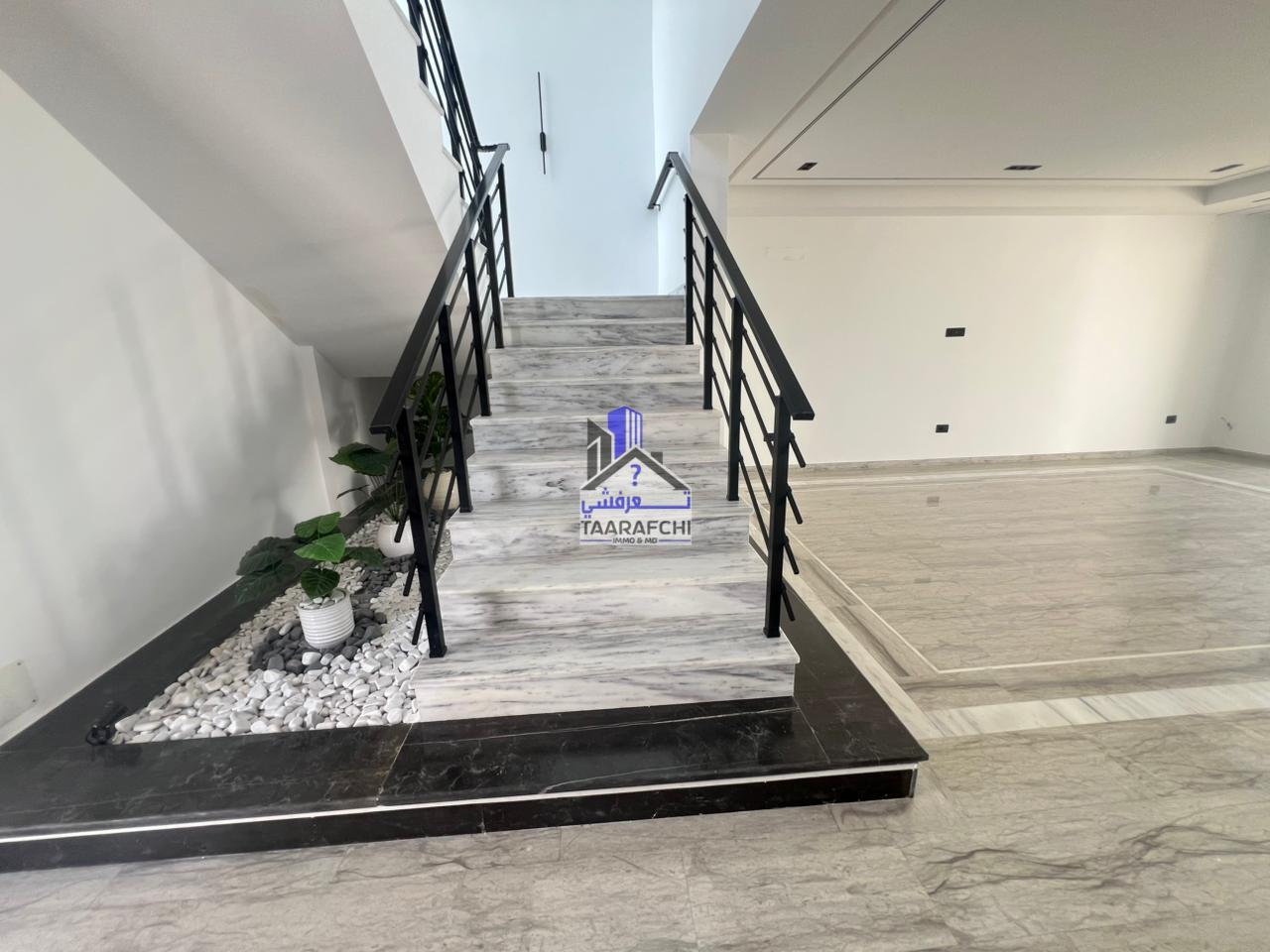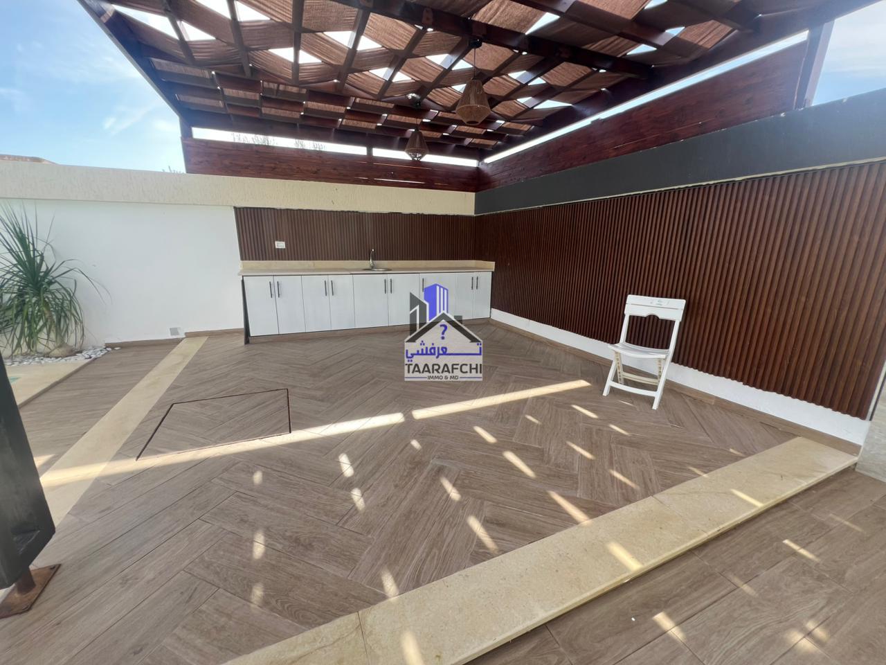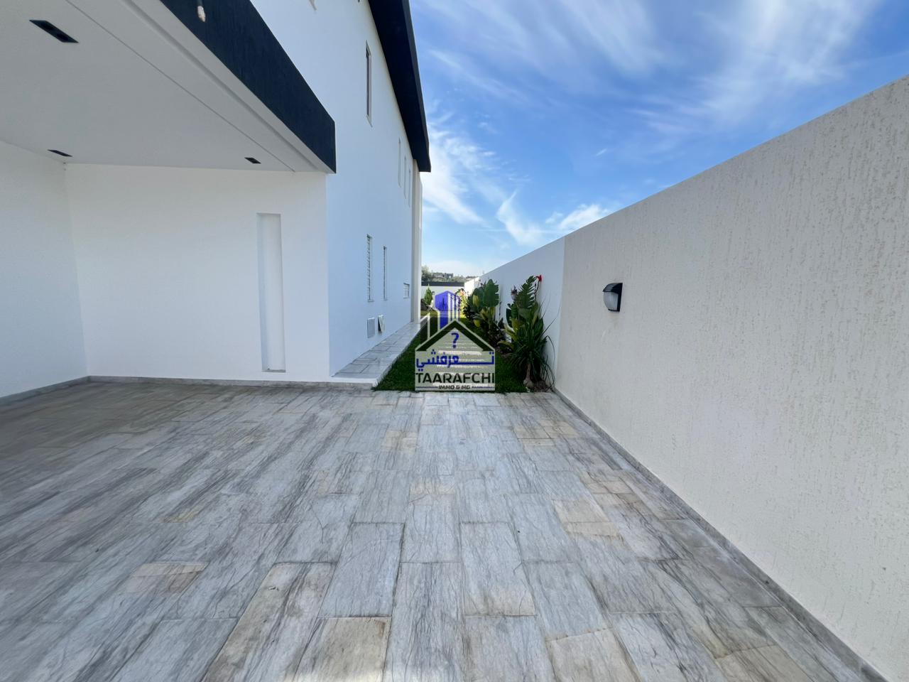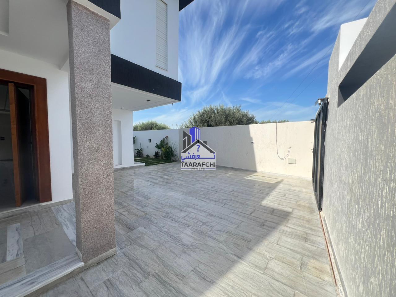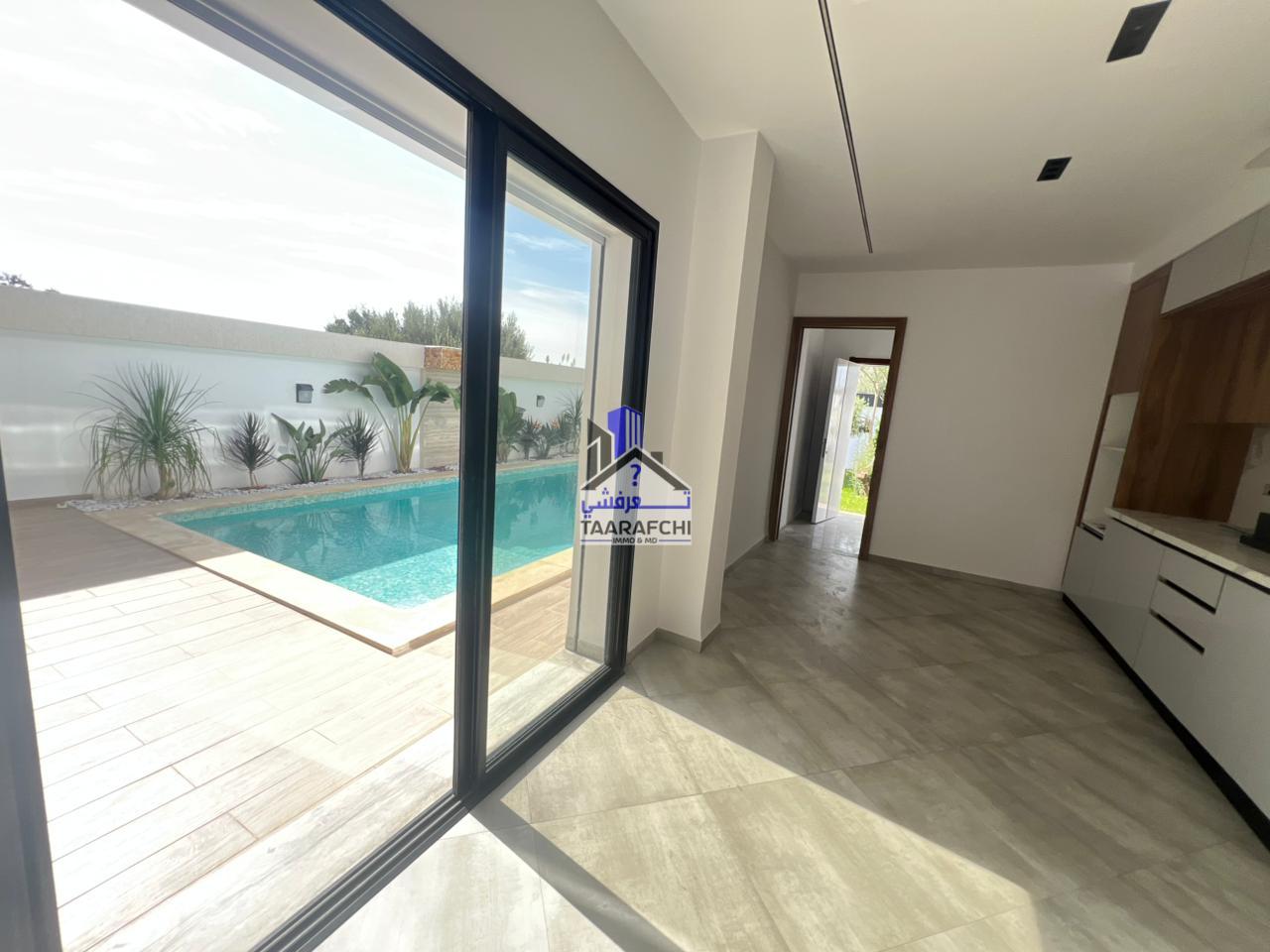A vendre une villa S+4 de haut standing avec piscine, située dans un emplacement entouré par des résidences de bon voisinage à Hammamet Sud.