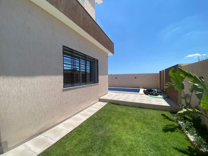 A vendre une villa S+5 avec grand jardin située à Hammamet pas loin du centre ville. Elle se compose d’un grand salon, une vaste cuisine, 05 chambres à coucher, une salle de bain et une salle d’eau avec douche. La villa est équipée de chauffage central.